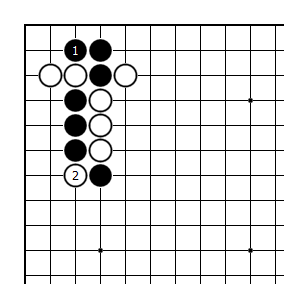 Black 1 is a gote end game but, white 2 makes black 1 sente end game.